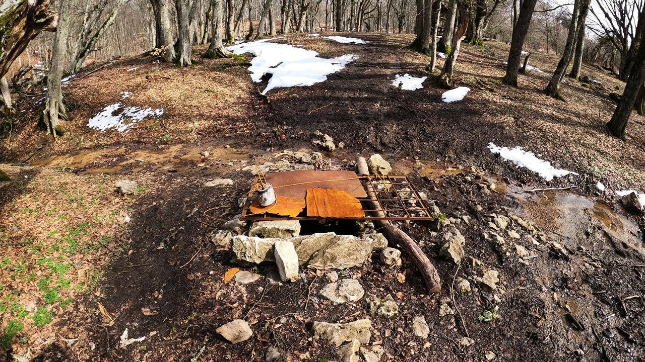 Колодец полный. Вода чистейшая. Котелок с веревкой на месте. Рядом теперь есть беседка