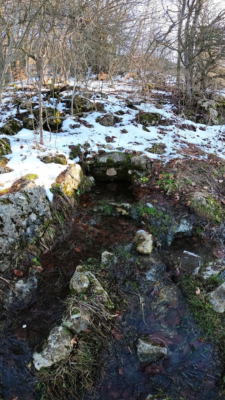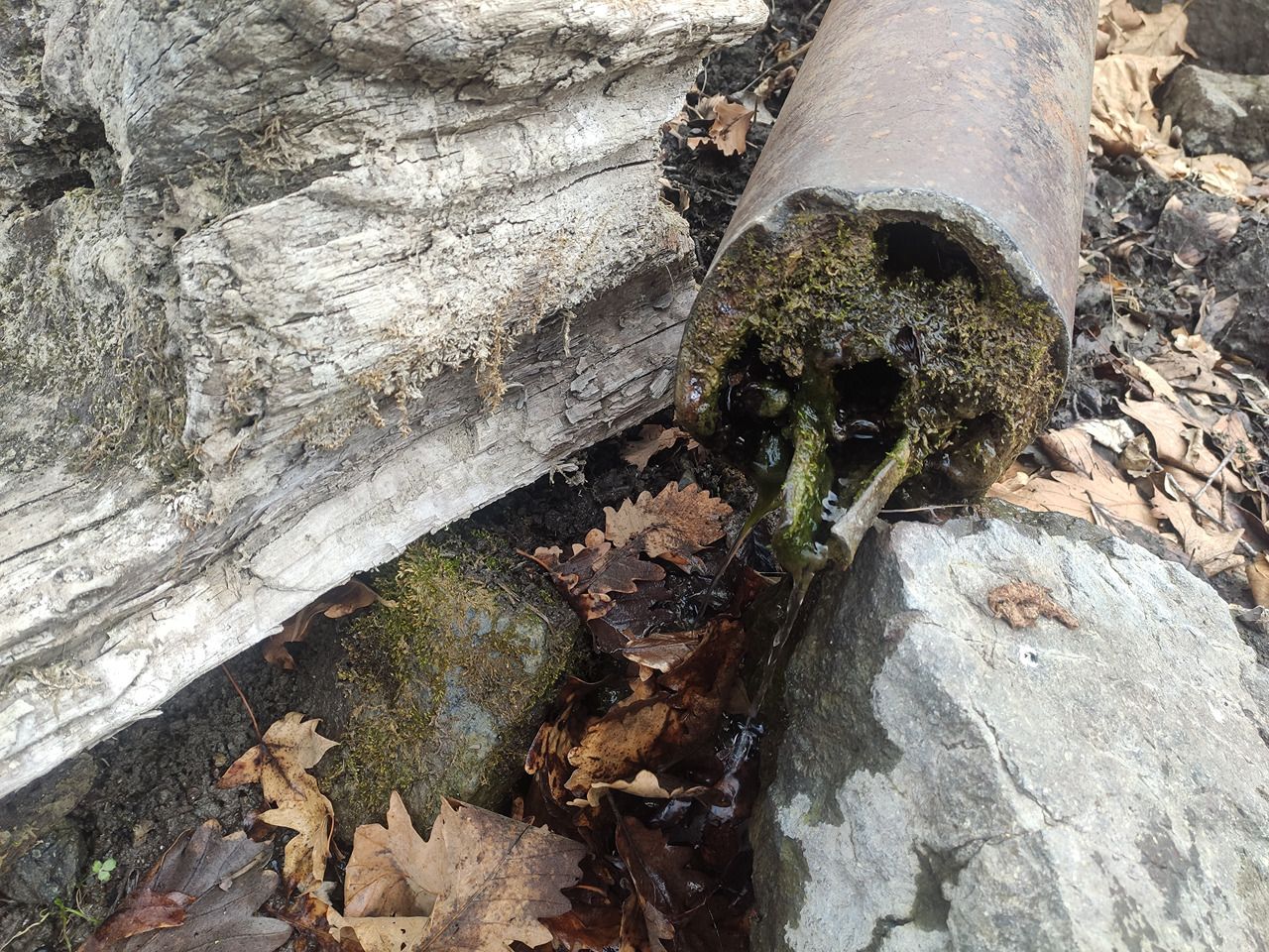 Местоположение колодца обозначено стрелкой, справа есть узкий проход в заросли. Колодец полный, до воды можно дотянуться рукой. Старая бутылка на вере...