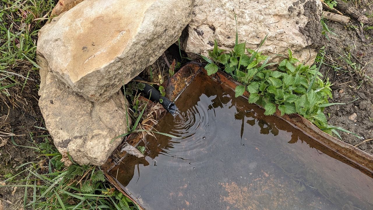 Родник у самого края воды, в конце мае 2025 буквально полметра было от реки.