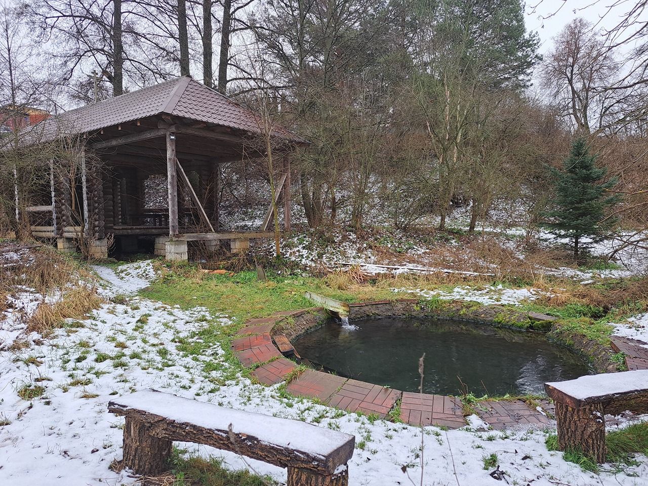 Родник с мощным потоком. Eсть отличная открытая купель.