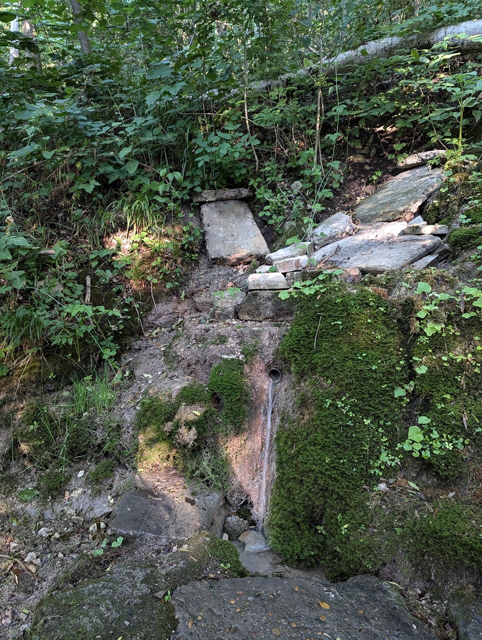 Вода выходит в двух местах. Воды много. Вкусная