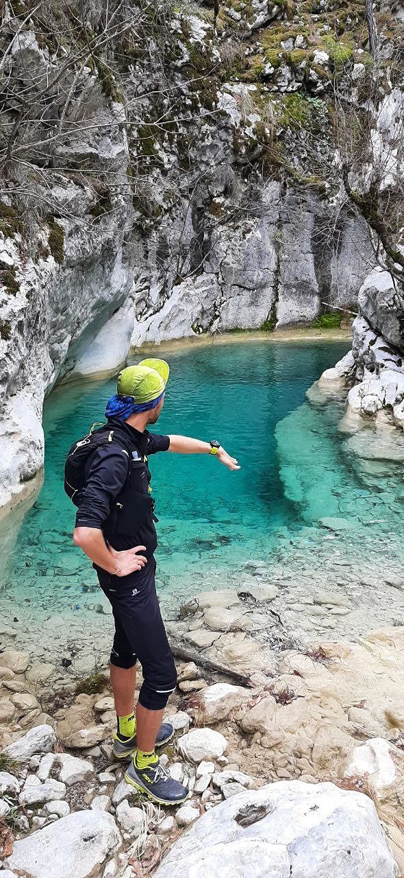 Чистейшая вода удивительного цвета. Глубоко. Наверху ещё одна такая же ванна, соединенная гладким скатом, как в аквапарке.