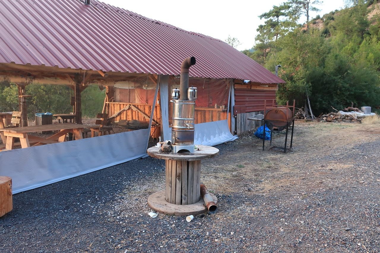 Water tap at Exolikya Cafe. Free camping, free hot shower. Cafe is open from 9am till about 7pm. Delicious food. The owner speaks English and Russian.