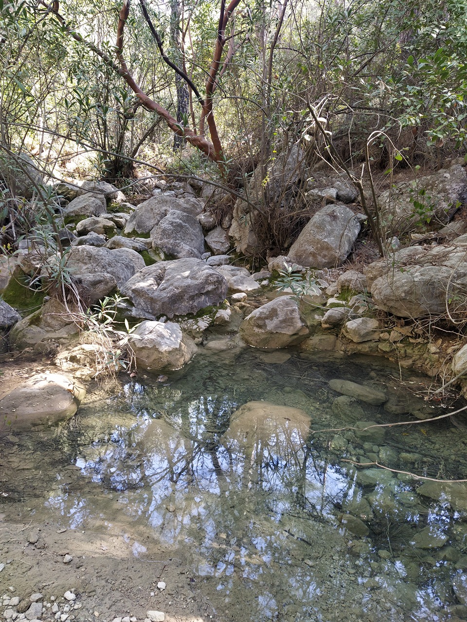 On April 10, 2021, observed residual water on the short section of the seasonal stream. Still but clear.