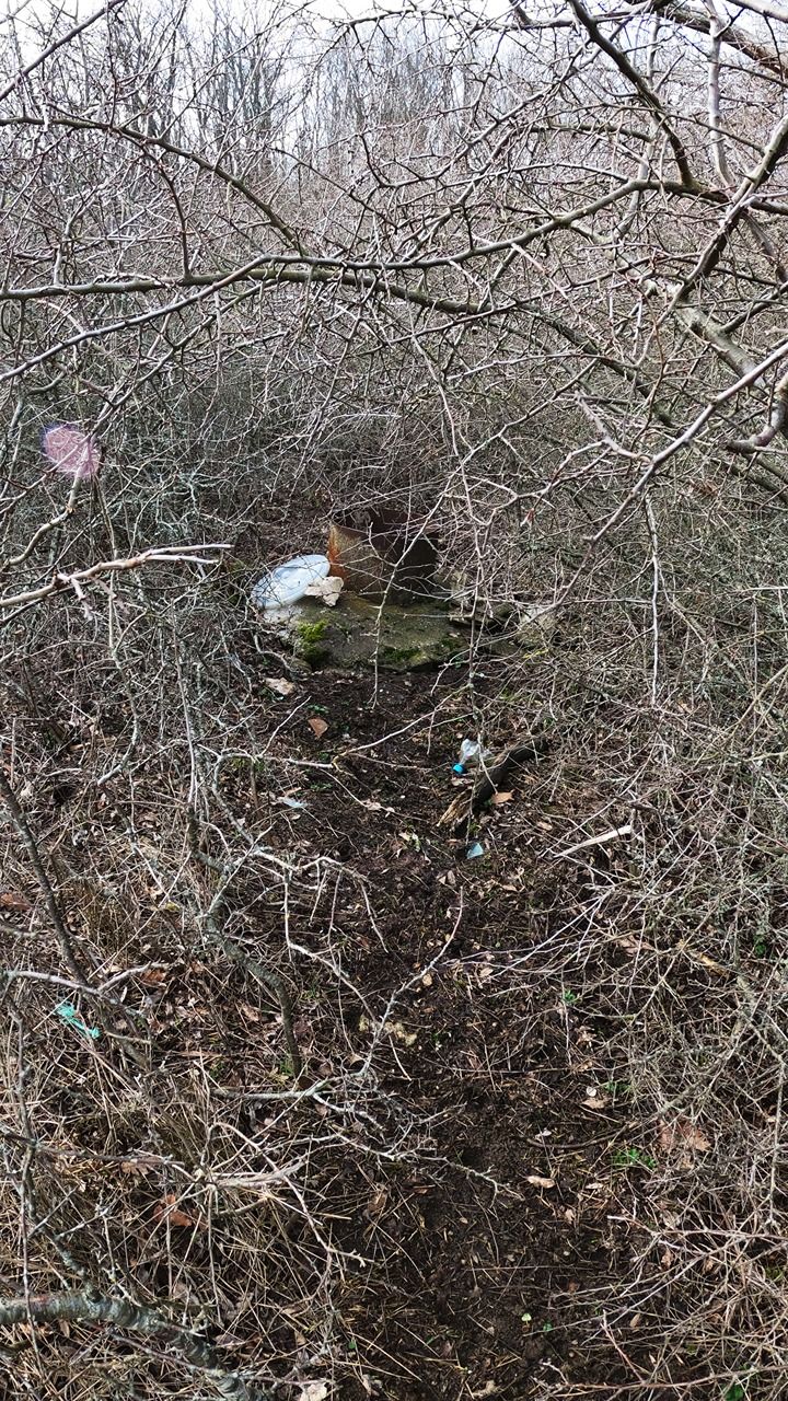 Местоположение колодца обозначено стрелкой, справа есть узкий проход в заросли. Колодец полный, до воды можно дотянуться рукой. Старая бутылка на веревке нуждается в замене)) Вода чистая, если не считать природный мусор в видео веточек и листиков
