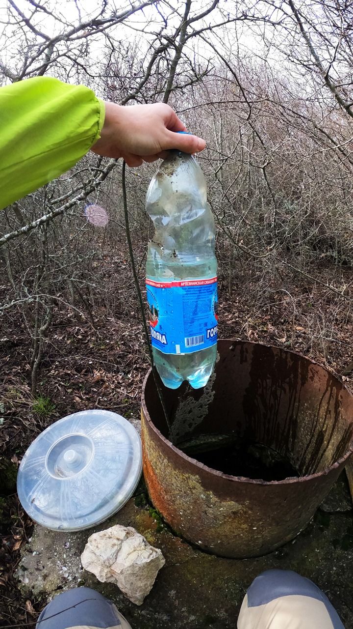 Вода отличная, чистая. Колодец находится в зарослях кустарника, обходить справа! Есть бутылка на верёвке.