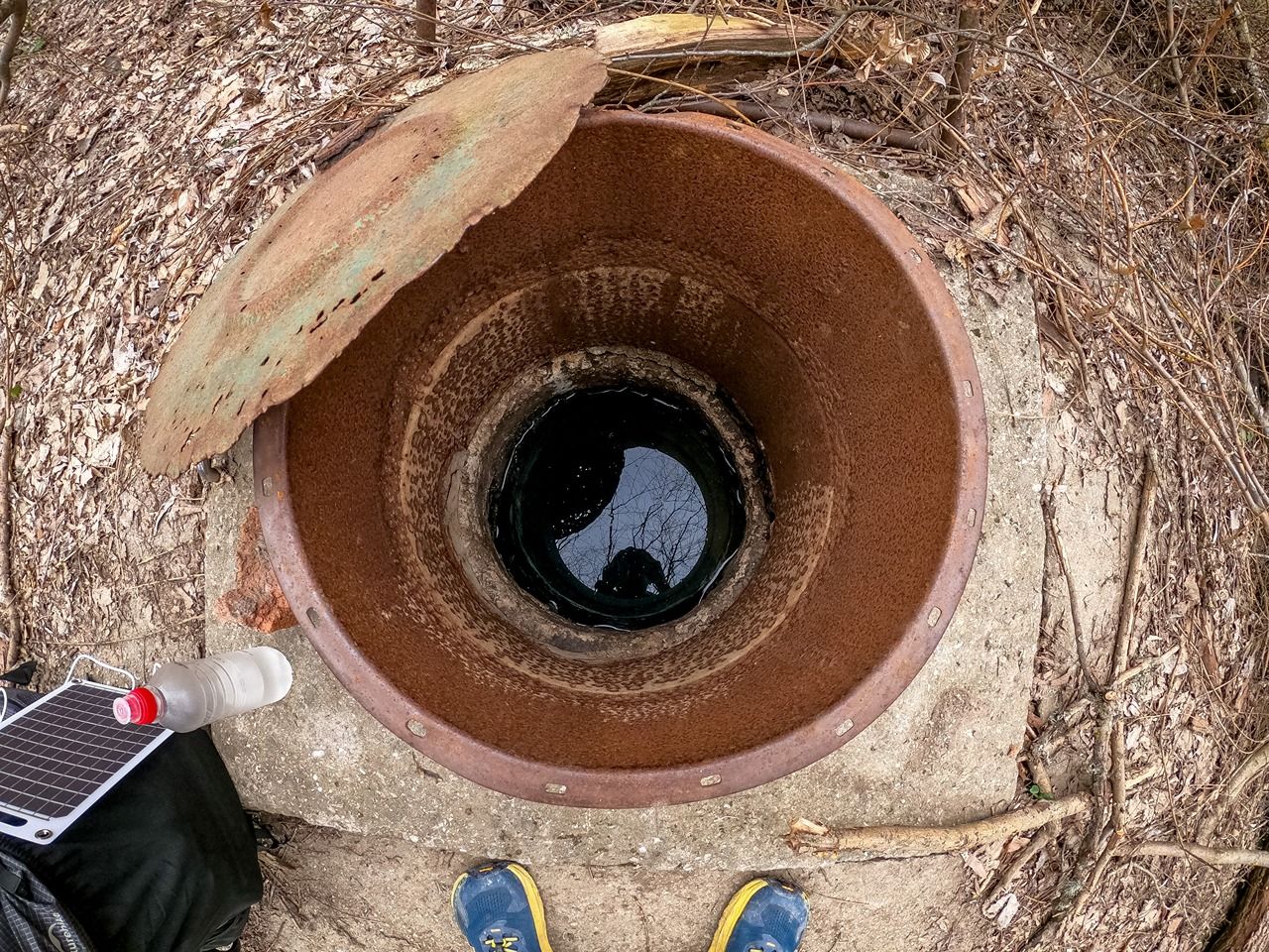 В колодце много мусора. Воды нет, если не считать лужу на дне