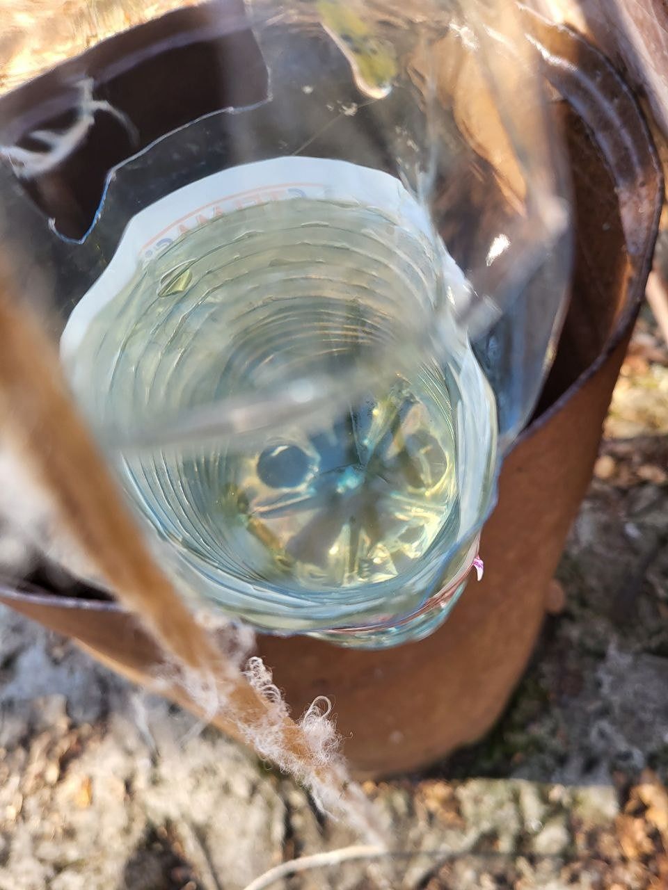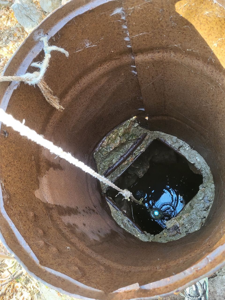 колодец явно виден с тропы, находится на большой поляне, рядом несколько столов с лавками. бутылка и веревка достаточной длины имеются, вода прозрачная и вполне приятная на вкус