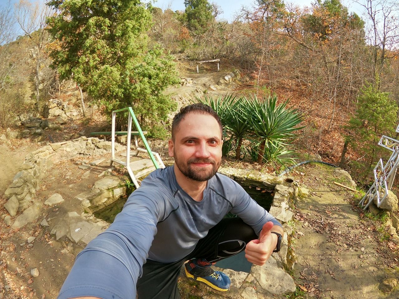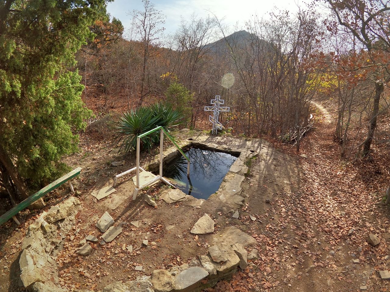 Источник бежит слабой струйкой, но рабочий. Под ним отличная купель. Рядом, если по тропе пройти назад в сторону Нового Света, и пару метров направо вверх по тропе - отличная стоянка для пары палаток.