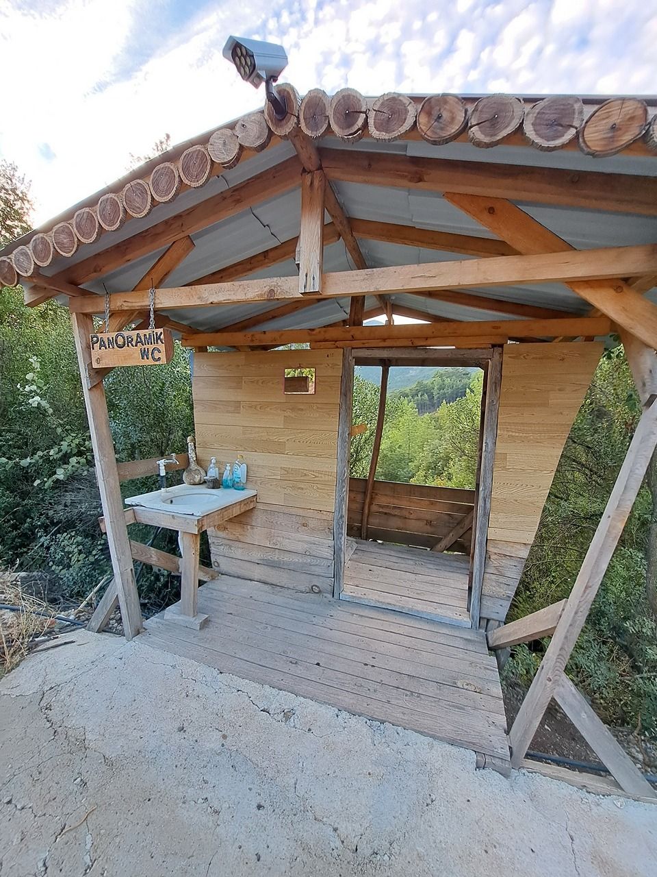 Умывальник у бесплатного панорамного туалета. Есть все необходимое.