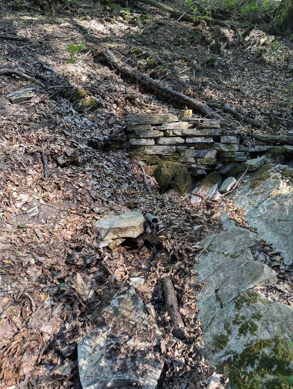 Вода выходит в двух местах. Воды много. Вкусная